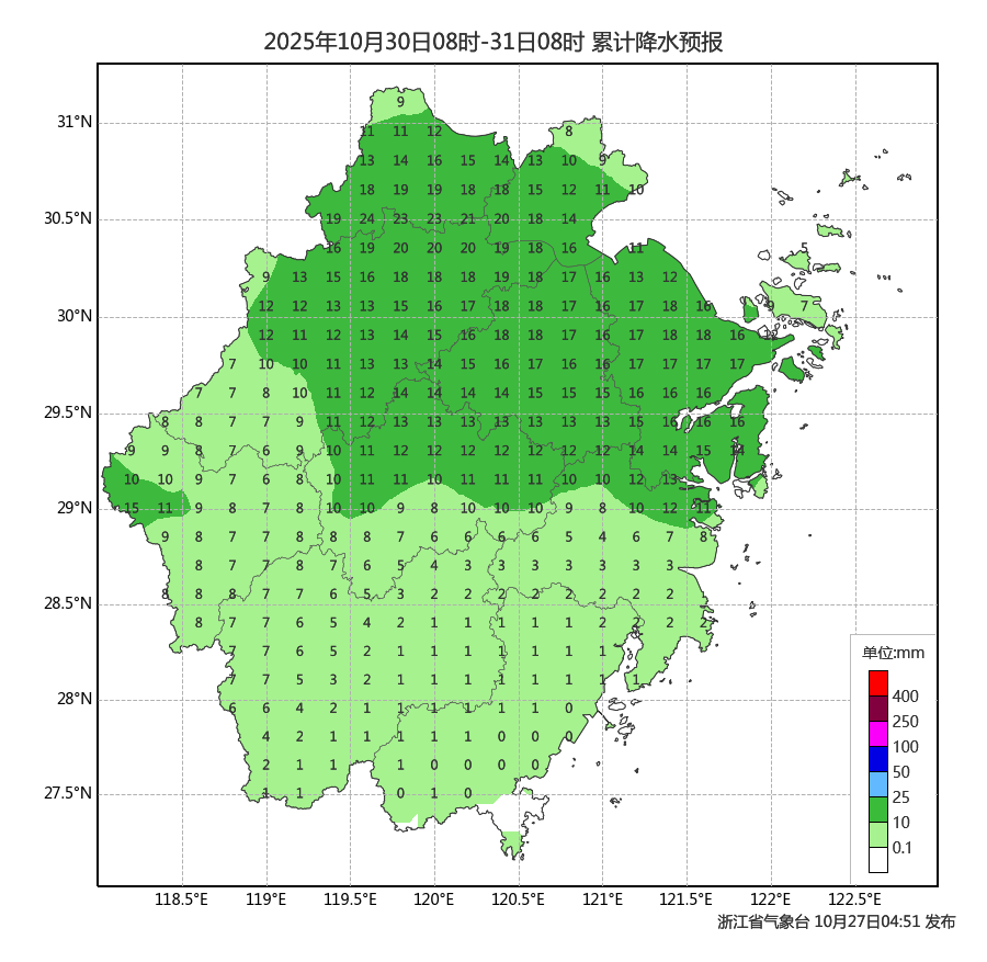 早晨最低温度:沿海地区15-17℃;浙北地区11-13℃;其它地区13-15℃。